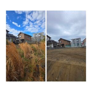 ○いわくにサポートでは、雑草の刈り取りから木の伐採、根の撤去、整地まで一通り対応しておりますので、お客様のご希望に沿って最適な形で、解決へとつながるよう作業プランをご提案いたします。