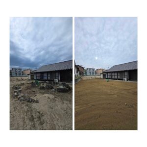 ・庭の整地と木の伐採や草刈りは、まとめて依頼することで効率よく進められ、費用や手間のバランスも取りやすくなります。重機を必要な場面で使用する事で、より満足度の高い仕上がりにつながります。